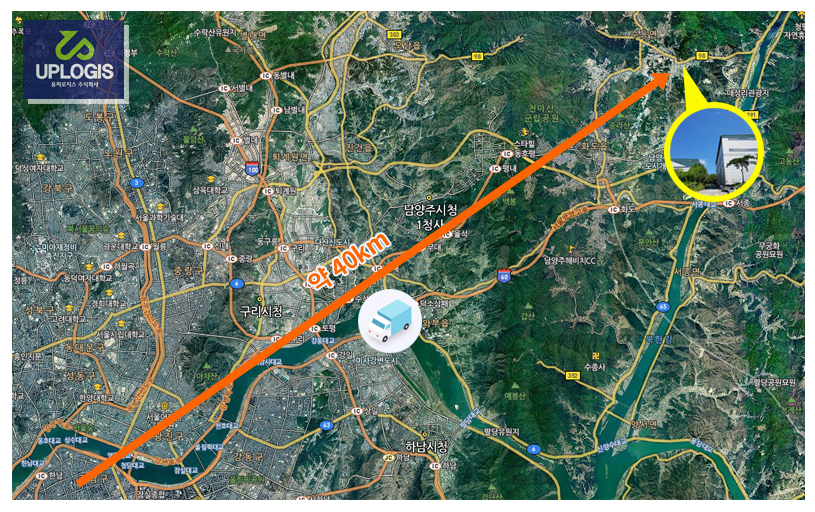 UPLOGIS는 경기도 남양주시에 위치하여 서울에서 1시간 이내의 접근성을 가지고 있습니다.